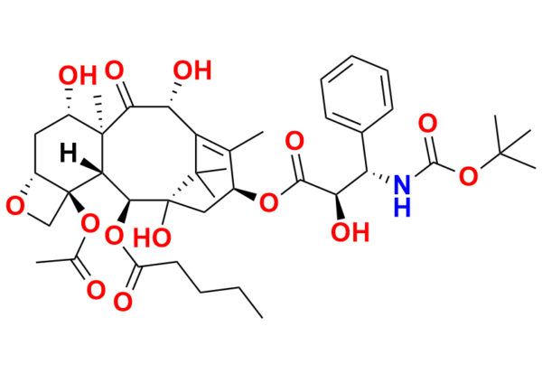 | Chemical name | (2aR,4S,4aS,6R,9S,11S,12S,12aR,12bS)-12b-acetoxy-9-(((2R,3S)-3-((tert-butoxycarbonyl)amino)-2-hydroxy-3-phenylpropanoyl)oxy)-4,6,11-trihydroxy-4a,8,13,13-tetramethyl-5-oxo-2a,3,4,4a,5,6,9,10,11,12,12a,12b-dodecahydro-1H-7,11-methanocyclodeca[3,4]benzo[1,2-b]oxet-12-yl pentanoate |
