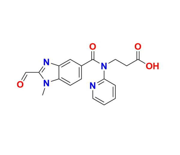 3-(2-formyl-1-methyl-N-(pyridin-2-yl)-1H-benzo[d]imidazole-5-carboxamido)propanoic acid is a high-quality reference standard supplied with comprehensive characterization data, ensuring compliance with regulatory guidelines. This product is essential for analytical method development, method validation (AMV), quality control (QC) applications, and plays a crucial role in Abbreviated New Drug Applications (ANDA). 3-(2-formyl-1-methyl-N-(pyridin-2-yl)-1H-benzo[d]imidazole-5-carboxamido)propanoic acid can be used as a reference standard, with possible traceability to pharmacopeial standards such as USP or EP, based on feasibility. AquigenBio products are strictly for analytical purposes and is not intended for human use.