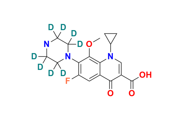 | Chemical Name | 1-Cyclopropyl-6-fluoro-8-methoxy-4-oxo-7-(piperazin-1-yl-2,2,3,3,5,5,6,6-d8)-1,4-dihydroquinoline-3-carboxylic acid |