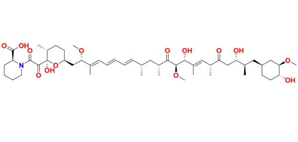 | Chemical name | (S)-1-(2-((2R, 3R, 6S)-6-((2S, 3E, 5E, 7E, 9S, 11R, 13R, 14R, 15E, 17R, 20S, 21R)-14, 20-dihydroxy-22-((1S, 3R, 4R)-4-hydroxy-3-methoxycyclohexyl)-2, 13-dimethoxy-3, 9, 11, 15, 17, 21-hexamethyl-12, 18-dioxodocosa-3, 5, 7, 15-tetraen-1-yl)-2-hydroxy-3-methyltetrahydro-2H-pyran-2-yl)-2-oxoacetyl)piperidine-2-carboxylic acid |
