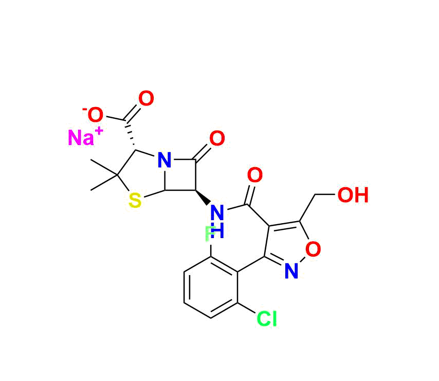 | Chemical name | sodium (2S,6R)-6-(3-(2-chloro-6-fluorophenyl)-5-(hydroxymethyl)isoxazole-4-carboxamido)-3,3-dimethyl-7-oxo-4-thia-1-azabicyclo[3.2.0]heptane-2-carboxylate |