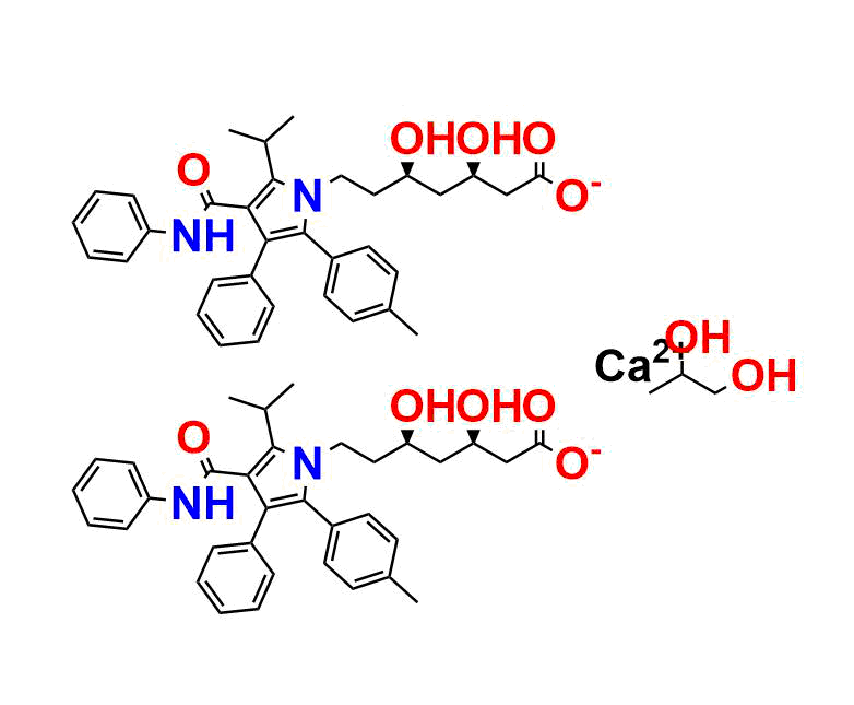 | Chemical name | calcium (3R, 5R)-3, 5-dihydroxy-7-(2-isopropyl-4-phenyl-3-(phenylcarbamoyl)-5-(p-tolyl)-1H-pyrrol-1-yl)heptanoic acid compound with propane-1, 2-diol (1:1) |