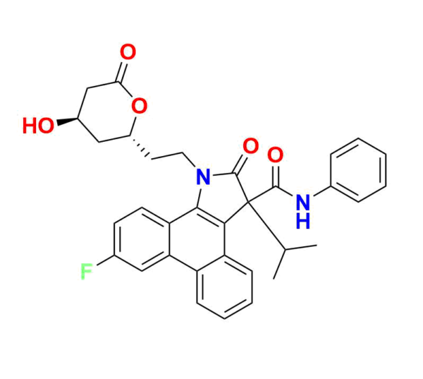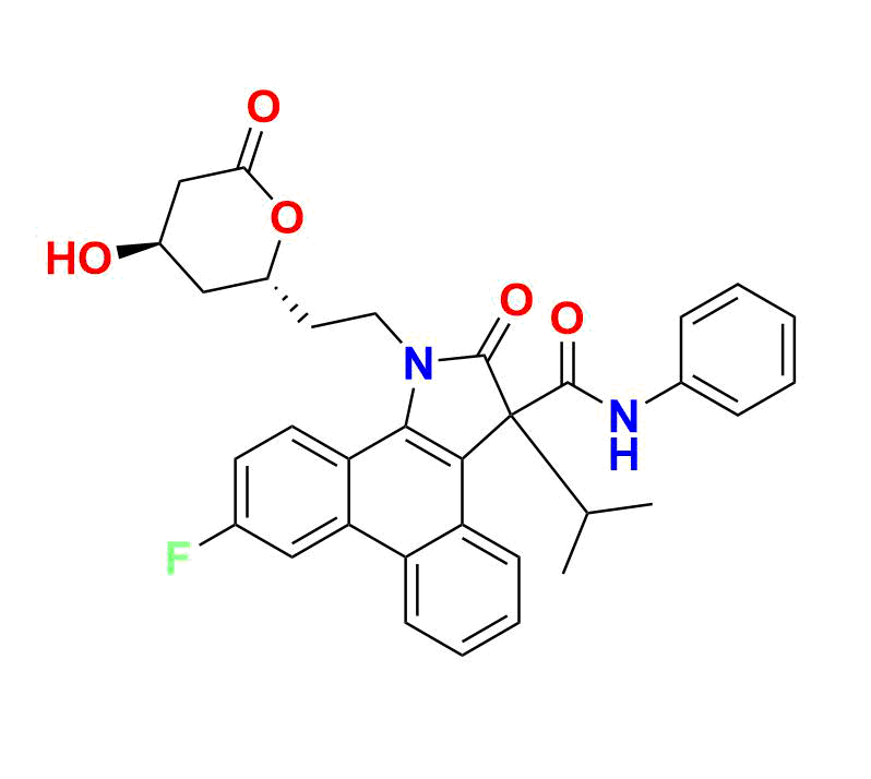 | Chemical name | 9-fluoro-1-(2-((2R, 4R)-4-hydroxy-6-oxotetrahydro-2H-pyran-2-yl)ethyl)-3-isopropyl-2-oxo-N-phenyl-2, 3-dihydro-1H-dibenzo[e, g]indole-3-carboxamide |