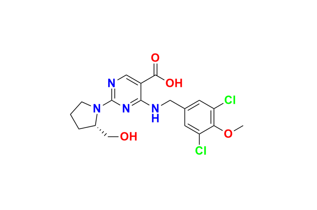 | Chemical name | (S)-4-((3, 5-dichloro-4-methoxybenzyl)amino)-2-(2-(hydroxymethyl)pyrrolidin-1-yl)pyrimidine-5-carboxylic acid |