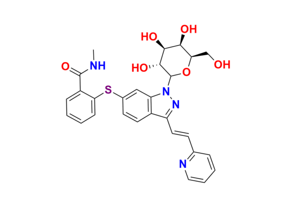 | Chemical name | N-methyl-2-((3-((E)-2-(pyridin-2-yl)vinyl)-1-((3R, 4S, 5R, 6R)-3, 4, 5-trihydroxy-6-(hydroxymethyl)tetrahydro-2H-pyran-2-yl)-1H-indazol-6-yl)thio)benzamide |