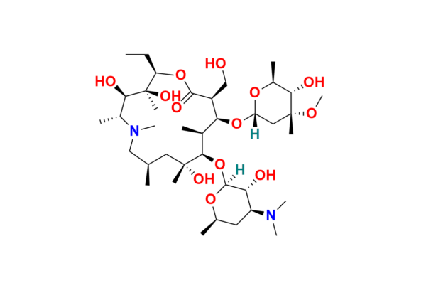 Azithromycin EP Impurity D is a high-quality reference standard supplied with comprehensive characterization data, ensuring compliance with regulatory guidelines. This product is essential for analytical method development, method validation (AMV), quality control (QC) applications, and plays a crucial role in Abbreviated New Drug Applications (ANDA).