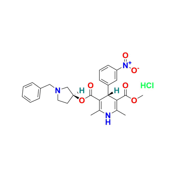 | Chemical name | 3-((S)-1-benzylpyrrolidin-3-yl) 5-methyl (R)-2, 6-dimethyl-4-(3-nitrophenyl)-1, 4-dihydropyridine-3, 5-dicarboxylate hydrochloride |