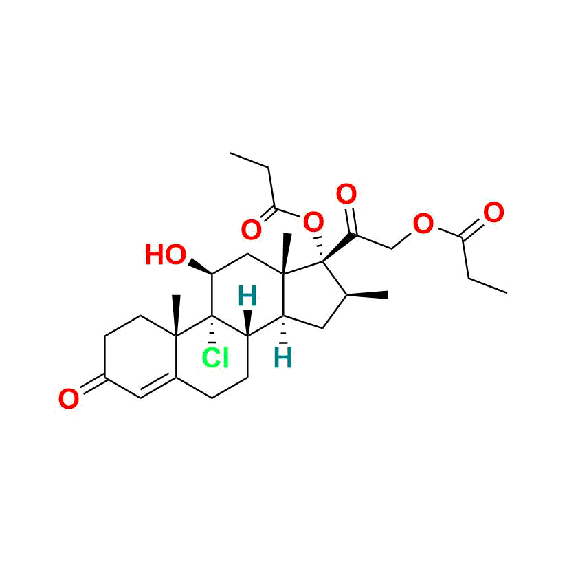 | Chemical name | (8S, 9R, 10S, 11S, 13S, 14S, 16S, 17R)-9-chloro-11-hydroxy-10, 13, 16-trimethyl-3-oxo-17-(2-(propionyloxy)acetyl)-2, 3, 6, 7, 8, 9, 10, 11, 12, 13, 14, 15, 16, 17-tetradecahydro-1H-cyclopenta[a]phenanthren-17-yl propionate |