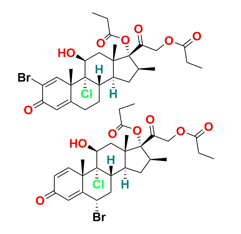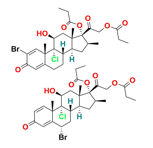 | Chemical name | (6S, 8S, 9R, 10S, 11S, 13S, 14S, 16S, 17R)-6-bromo-9-chloro-11-hydroxy-10, 13, 16-trimethyl-3-oxo-17-(2-(propionyloxy)acetyl)-6, 7, 8, 9, 10, 11, 12, 13, 14, 15, 16, 17-dodecahydro-3H-cyclopenta[a]phenanthren-17-yl propionate–(8S, 9R, 10S, 11S, 13S, 14S, 16S, 17R)-2-bromo-9-chloro-11-hydroxy-10, 13, 16-trimethyl-3-oxo-17-(2-(propionyloxy)acetyl)-6, 7, 8, 9, 10, 11, 12, 13, 14, 15, 16, 17-dodecahydro-3H-cyclopenta[a]phenanthren-17-yl propionate (1/1) |
