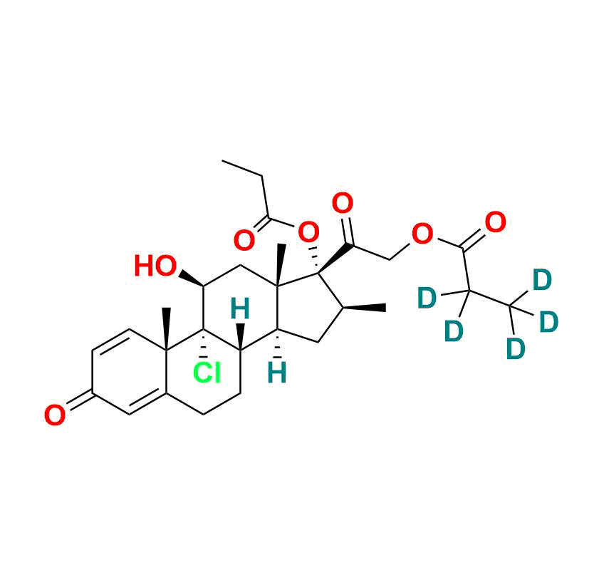 | Chemical name | 2-((8S, 9R, 10S, 11S, 13S, 14S, 16S, 17R)-9-chloro-11-hydroxy-10, 13, 16-trimethyl-3-oxo-17-(propionyloxy)-6, 7, 8, 9, 10, 11, 12, 13, 14, 15, 16, 17-dodecahydro-3H-cyclopenta[a]phenanthren-17-yl)-2-oxoethyl propanoate-d5 |