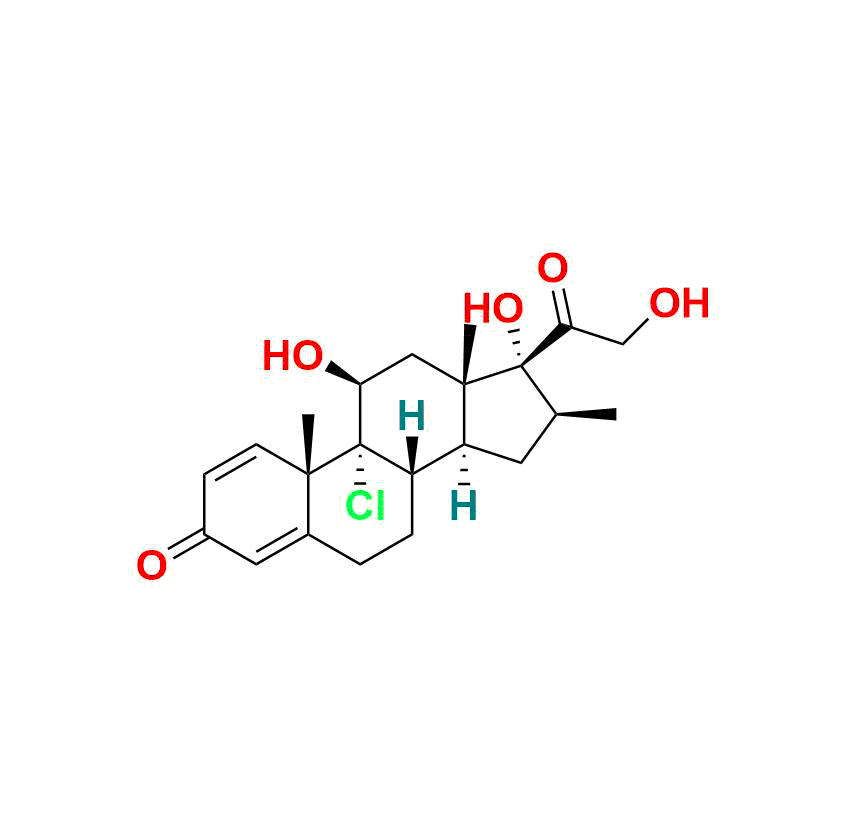 | Chemical name | (8S, 9R, 10S, 11S, 13S, 14S, 16S, 17R)-9-chloro-11, 17-dihydroxy-17-(2-hydroxyacetyl)-10, 13, 16-trimethyl-6, 7, 8, 9, 10, 11, 12, 13, 14, 15, 16, 17-dodecahydro-3H-cyclopenta[a]phenanthren-3-one |