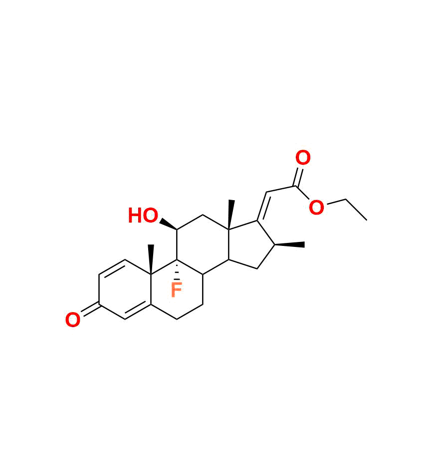 | Chemical name | ethyl (E)-2-((9R, 10S, 11S, 13S, 16S)-9-fluoro-11-hydroxy-10, 13, 16-trimethyl-3-oxo-3, 6, 7, 8, 9, 10, 11, 12, 13, 14, 15, 16-dodecahydro-17H-cyclopenta[a]phenanthren-17-ylidene)acetate |