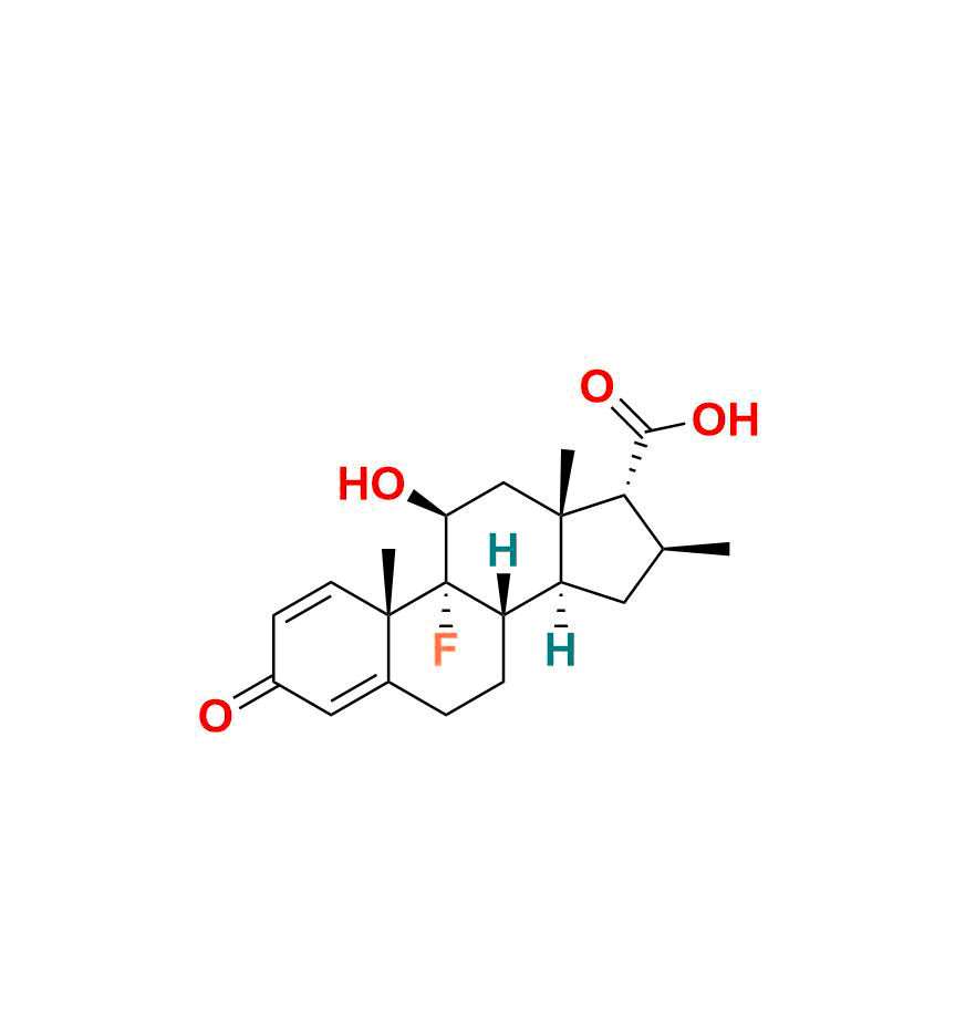 | Chemical name | (8S, 9R, 10S, 11S, 13S, 14S, 16S, 17R)-9-fluoro-11-hydroxy-10, 13, 16-trimethyl-3-oxo-6, 7, 8, 9, 10, 11, 12, 13, 14, 15, 16, 17-dodecahydro-3H-cyclopenta[a]phenanthrene-17-carboxylic acid |