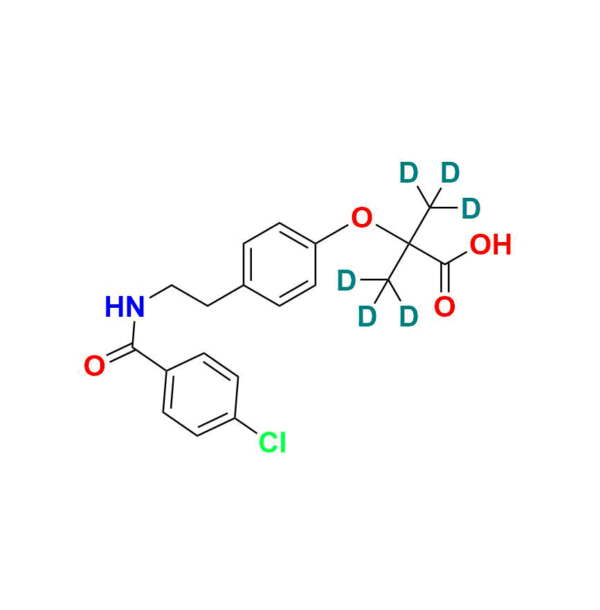 | Chemical name | 2-(4-(2-(4-chlorobenzamido)ethyl)phenoxy)-2-(methyl-d3)propanoic-3, 3, 3-d3 acid |