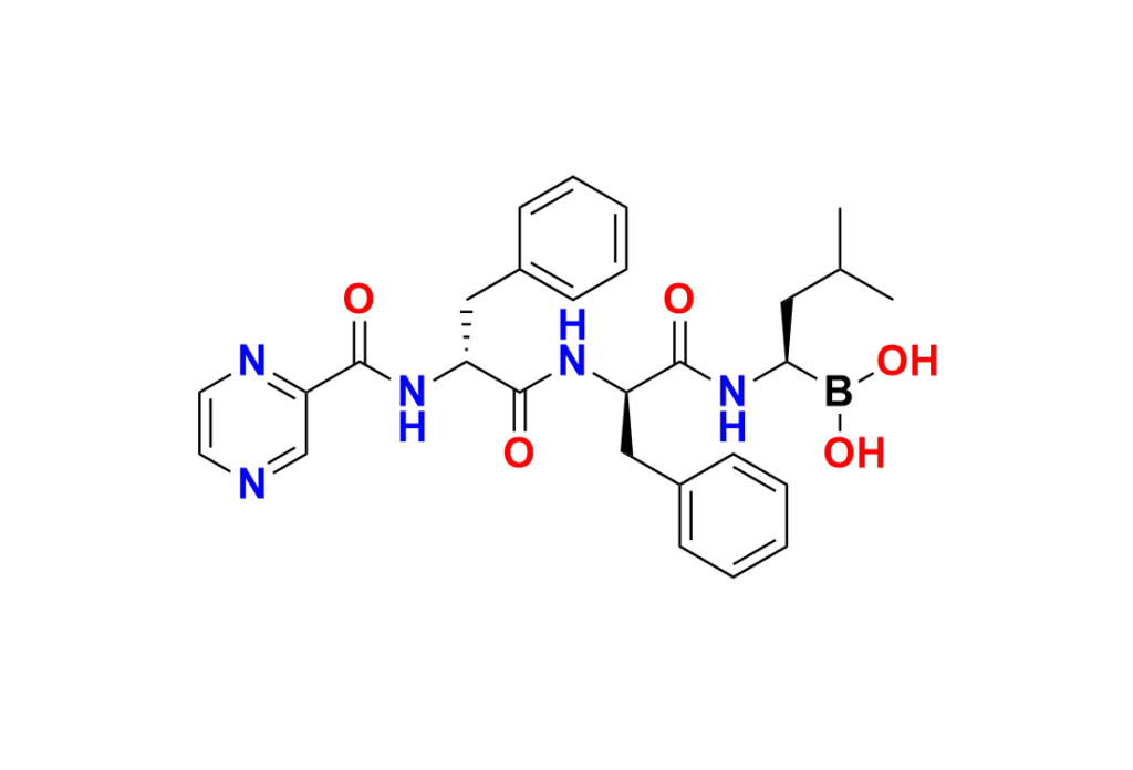 | Chemical name | ((R)-3-methyl-1-((R)-3-phenyl-2-((R)-3-phenyl-2-(pyrazine-2-carboxamido)propanamido)propanamido)butyl)boronic acid |
