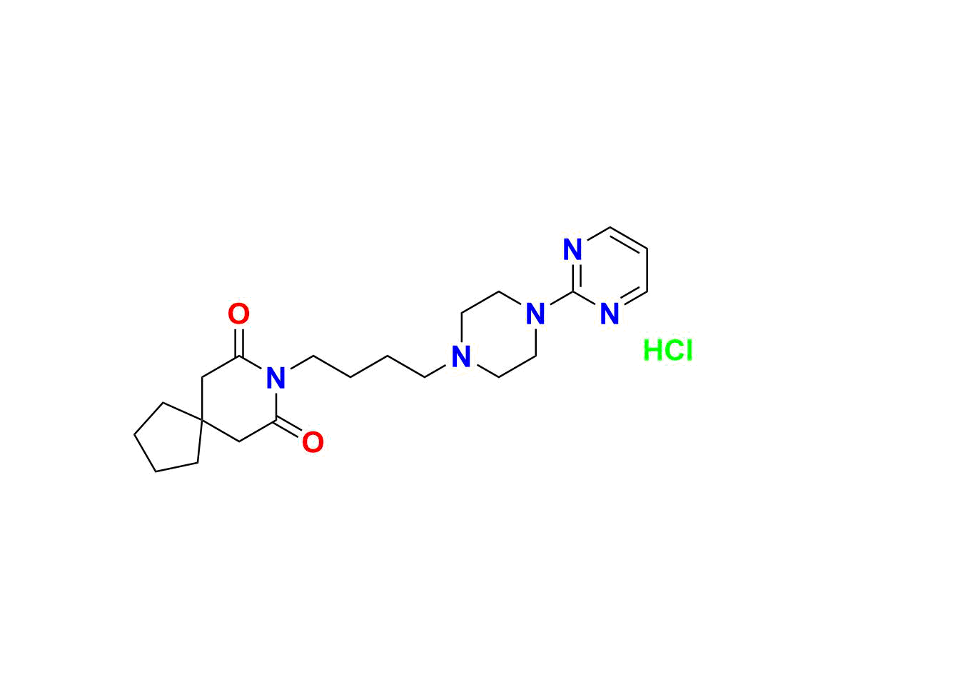 | Chemical name | 8-(4-(4-(pyrimidin-2-yl)piperazin-1-yl)butyl)-8-azaspiro[4.5]decane-7, 9-dione hydrochloride |
