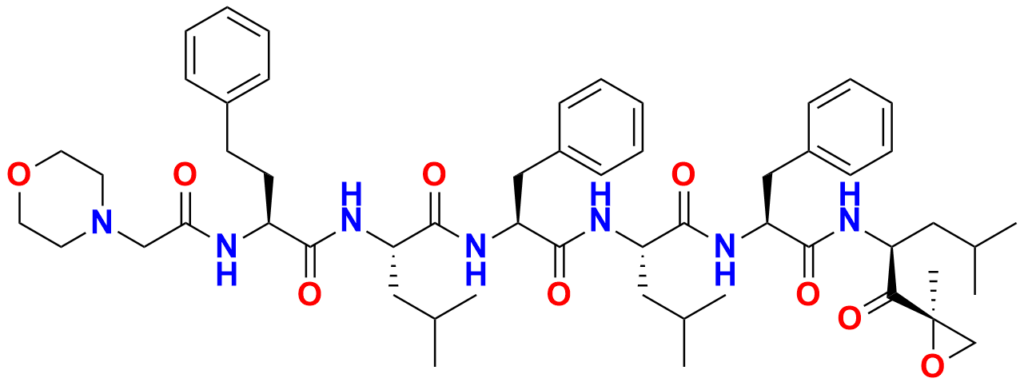 | Chemical name | (S)-4-methyl-N-((S)-1-(((S)-4-methyl-1-(((S)-1-(((S)-4-methyl-1-((R)-2-methyloxiran-2-yl)-1-oxopentan-2-yl)amino)-1-oxo-3-phenylpropan-2-yl)amino)-1-oxopentan-2-yl)amino)-1-oxo-3-phenylpropan-2-yl)-2-((S)-2-(2-morpholinoacetamido)-4-phenylbutanamido)pentanamide |