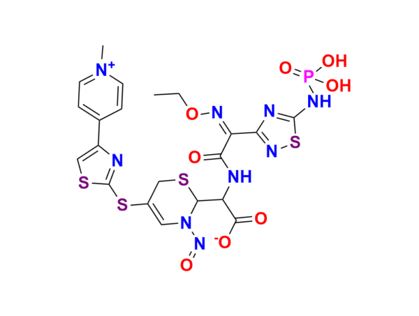 | Chemical name | (Z)-2-(2-(Ethoxyimino)-2-(5-(phosphonoamino)-1, 2, 4-thiadiazol-3-yl)acetamido)-2-(5-((4-(1-methylpyridin-1-ium-4-yl)thiazol-2-yl)thio)-3-nitroso-3, 6-dihydro-2H-1, 3-thiazin-2-yl)acetate |