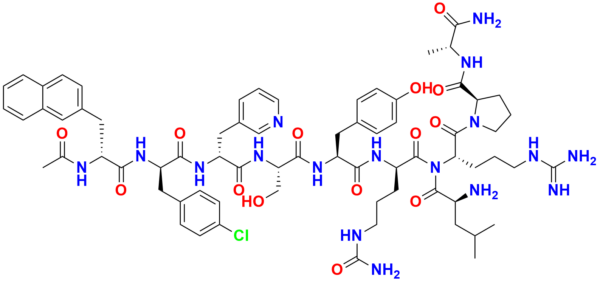 | Chemical name | (R)-1-(((R)-2-((S)-2-((S)-2-((R)-2-((R)-2-((R)-2-acetamido-3-(naphthalen-2-yl)propanamido)-3-(4-chlorophenyl)propanamido)-3-(pyridin-3-yl)propanamido)-3-hydroxypropanamido)-3-(4-hydroxyphenyl)propanamido)-5-ureidopentanoyl)-L-leucyl-L-arginyl)-N-((R)-1-am |