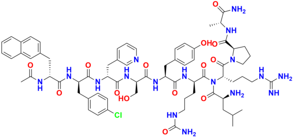 | Chemical name | (R)-1-(((R)-2-((S)-2-((R)-2-((R)-2-((R)-2-((R)-2-acetamido-3-(naphthalen-2-yl)propanamido)-3-(4-chlorophenyl)propanamido)-3-(pyridin-3-yl)propanamido)-3-hydroxypropanamido)-3-(4-hydroxyphenyl)propanamido)-5-ureidopentanoyl)-L-leucyl-L-arginyl)-N-((R)-1-am |