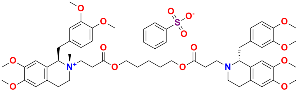 | Chemical name | (1R, 2S)-1-[(3, 4-Dimethoxyphenyl)methyl]-2-[3-[[5-[[3-[(1R)-1-[(3, 4-dimethoxyphenyl)methyl]-6, 7-dimethoxy-3, 4-dihydroisoquinolin-2(1H)-yl]propanoyl]oxy]pentyl]oxy]-3-oxopropyl]-6, 7-dimethoxy-2-methyl-1, 2, 3, 4-tetrahydroisoquinolinium benzenesulfonate |