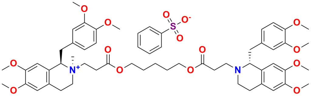 | Chemical name | (1R, 2R)-1-[(3, 4-Dimethoxyphenyl)methyl]-2-[3-[[5-[[3-[(1R)-1-[(3, 4-dimethoxyphenyl)methyl]-6, 7-dimethoxy-3, 4-dihydroisoquinolin-2(1H)-yl]propanoyl]oxy]pentyl]oxy]-3-oxopropyl]-6, 7-dimethoxy-2-methyl-1, 2, 3, 4-tetrahydroisoquinolinium benzenesulfonate |