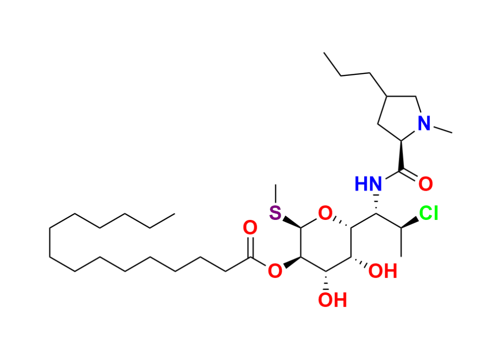 | Chemical name | (2R, 3R, 4S, 5R, 6R)-6-((1S, 2S)-2-chloro-1-((2R)-1-methyl-4-propylpyrrolidine-2-carboxamido)propyl)-4, 5-dihydroxy-2-(methylthio)tetrahydro-2H-pyran-3-yl pentadecanoate |