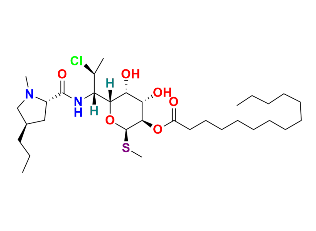 | Chemical name | (2R, 3R, 4S, 5R, 6R)-6-((1S, 2S)-2-chloro-1-((2S, 4R)-1-methyl-4-propylpyrrolidine-2-carboxamido)propyl)-4, 5-dihydroxy-2-(methylthio)tetrahydro-2H-pyran-3-yl tetradecanoate |