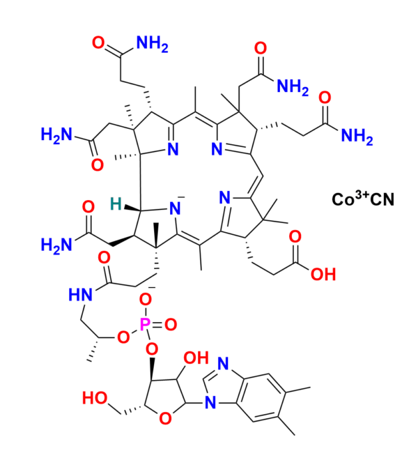 Cyanocobalamin EP Impurity B is a high-quality reference standard supplied with comprehensive characterization data, ensuring compliance with regulatory guidelines. This product is essential for analytical method development, method validation (AMV), quality control (QC) applications, and plays a crucial role in Abbreviated New Drug Applications (ANDA).