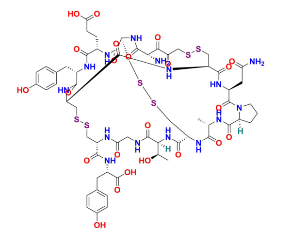 | Chemical name | ((3S, 6R, 9S, 15R, 20R, 23S, 26S, 29R, 32S, 39R, 42S, 47aS)-32-amino-42-(2-amino-2-oxoethyl)-26-(2-carboxyethyl)-23-(4-hydroxybenzyl)-9-((R)-1-hydroxyethyl)-3-methyl-1, 4, 7, 10, 13, 22, 25, 28, 31, 33, 34, 40, 43, 49-tetradecaoxodotetracontahydro-19H-39, 20-(epiminomethano)-6, 29-(methanodithiomethano)pyrrolo[2, 1-s][1, 2, 27, 28]tetrathia[5, 8, 11, 14, 17, 20, 23, 34, 37, 40, 43]undecaazacyclopentatetracontine-15-carbonyl)-L-tyrosine |