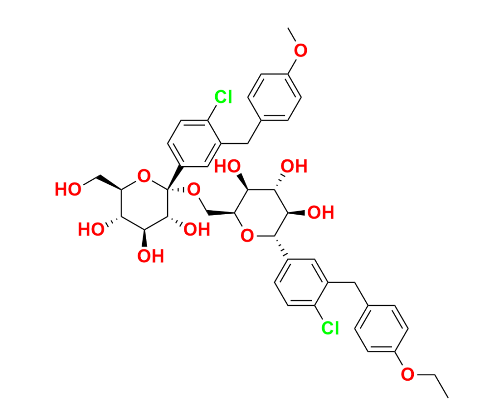 | Chemical name | (2S, 3R, 4S, 5S, 6R)-2-(((2S, 3S, 4R, 5R, 6S)-6-(4-Chloro-3-(4-ethoxybenzyl)phenyl)-3, 4, 5-trihydroxytetrahydro-2H-pyran-2-yl)methoxy)-2-(4-chloro-3-(4-methoxybenzyl)phenyl)-6-(hydroxymethyl)tetrahydro-2H-pyran-3, 4, 5-triol |