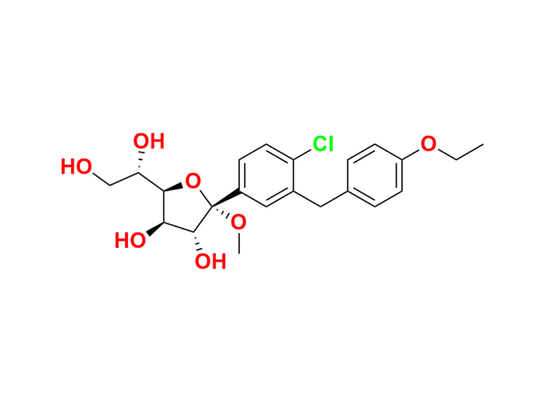 | Chemical name | (2S, 3R, 4R, 5R)-2-(4-Chloro-3-(4-ethoxybenzyl)phenyl)-5-((S)-1, 2-dihydroxyethyl)-2-methoxytetrahydrofuran-3, 4-diol |