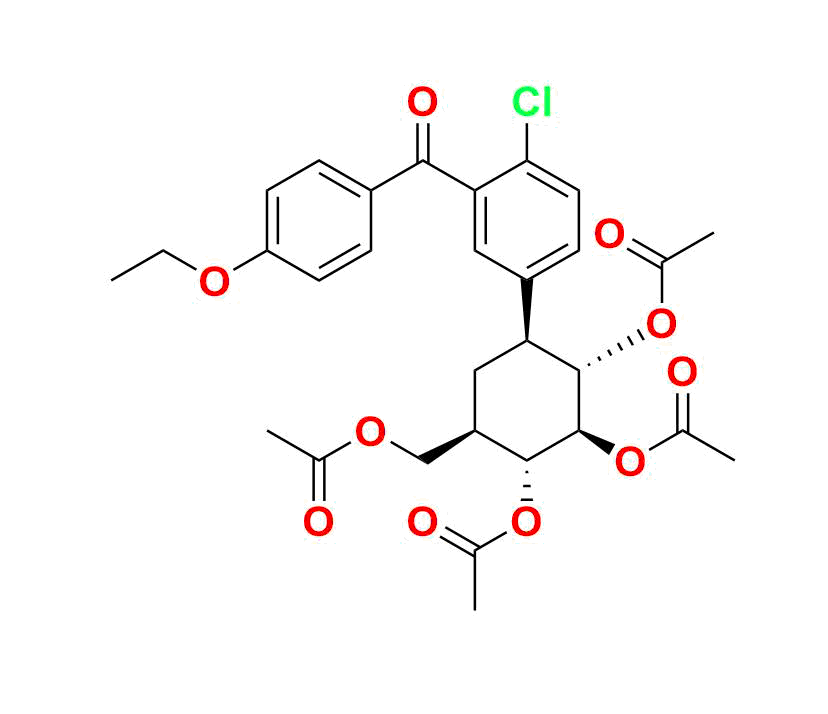 | Chemical name | (1S, 2R, 3R, 4R, 6S)-4-(acetoxymethyl)-6-(4-chloro-3-(4-ethoxybenzoyl)phenyl)cyclohexane-1, 2, 3-triyl triacetate |