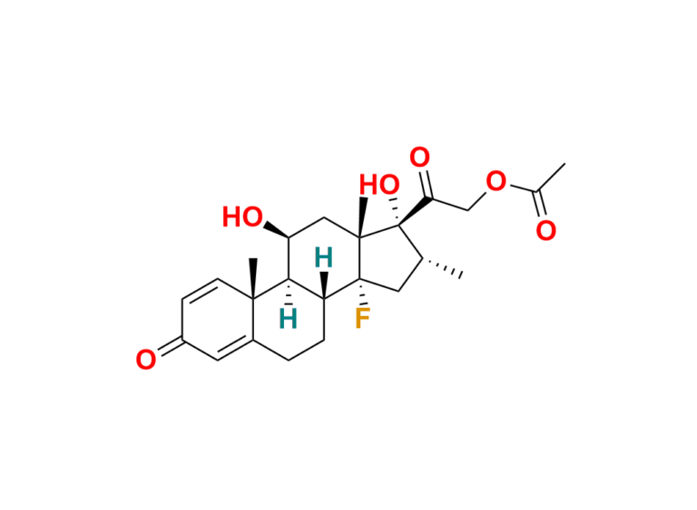 | Chemical name | 2-((8R, 9S, 10R, 11S, 13R, 14R, 16R, 17R)-14-fluoro-11, 17-dihydroxy-10, 13, 16-trimethyl-3-oxo-6, 7, 8, 9, 10, 11, 12, 13, 14, 15, 16, 17-dodecahydro-3H-cyclopenta[a]phenanthren-17-yl)-2-oxoethyl acetate |