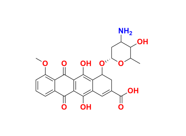 | Chemical name | 4-(((2S)-4-Amino-5-hydroxy-6-methyltetrahydro-2H-pyran-2-yl)oxy)-5, 12-dihydroxy-7-methoxy-6, 11-dioxo-3, 4, 6, 11-tetrahydrotetracene-2-carboxylic acid |