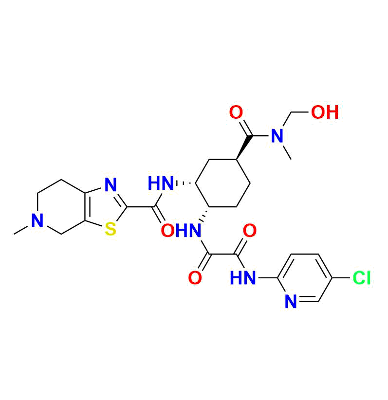 | Chemical name | N1-(5-chloropyridin-2-yl)-N2-((1S, 2R, 4S)-4-((hydroxymethyl)(methyl)carbamoyl)-2-(5-methyl-4, 5, 6, 7-tetrahydrothiazolo[5, 4-c]pyridine-2-carboxamido)cyclohexyl)oxalamide |
