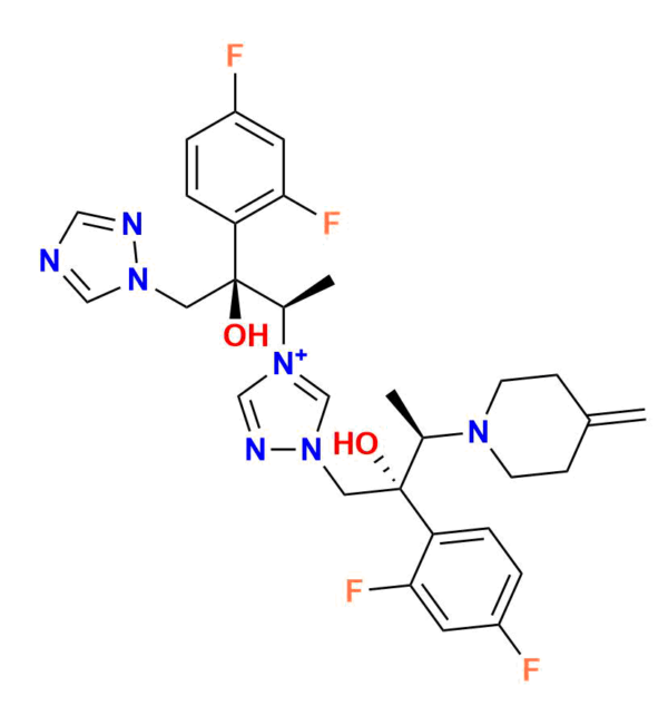 | Chemical name | 1-((2R, 3R)-2-(2, 4-difluorophenyl)-2-hydroxy-3-(4-methylenepiperidin-1-yl)butyl)-4-((2R, 3R)-3-(2, 4-difluorophenyl)-3-hydroxy-4-(1H-1, 2, 4-triazol-1-yl)butan-2-yl)-1H-1, 2, 4-triazol-4-ium |