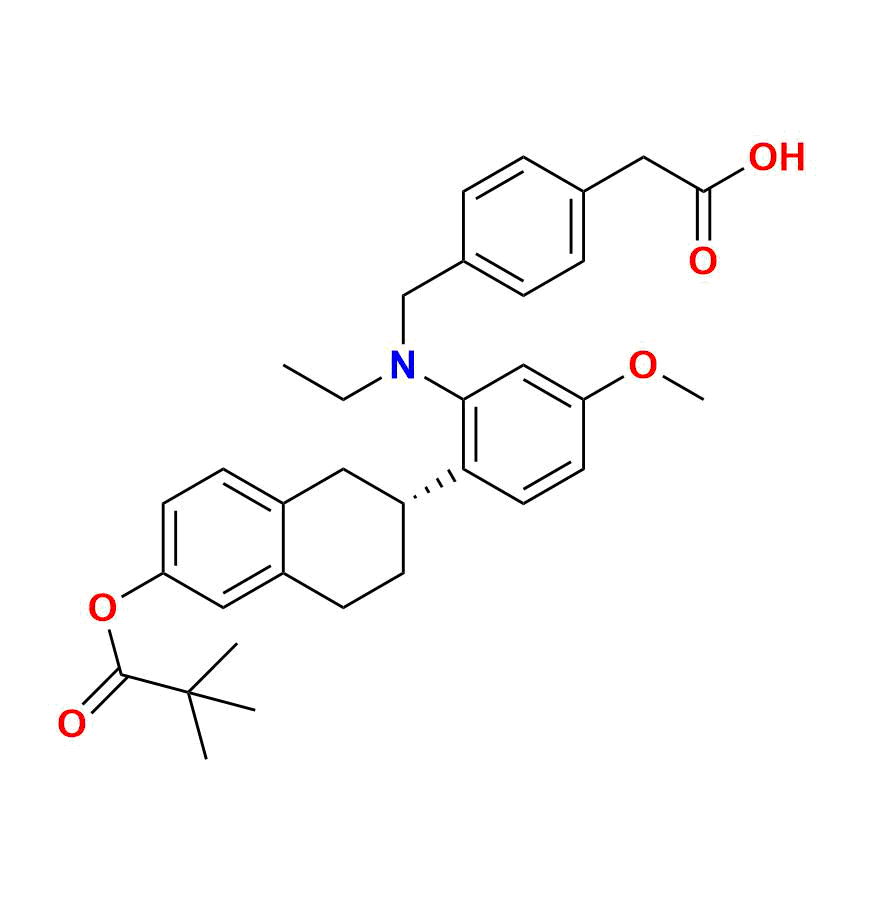 | Chemical name | (R)-2-(4-((ethyl(5-methoxy-2-(6-(pivaloyloxy)-1, 2, 3, 4-tetrahydronaphthalen-2-yl)phenyl)amino)methyl)phenyl)acetic acid |
