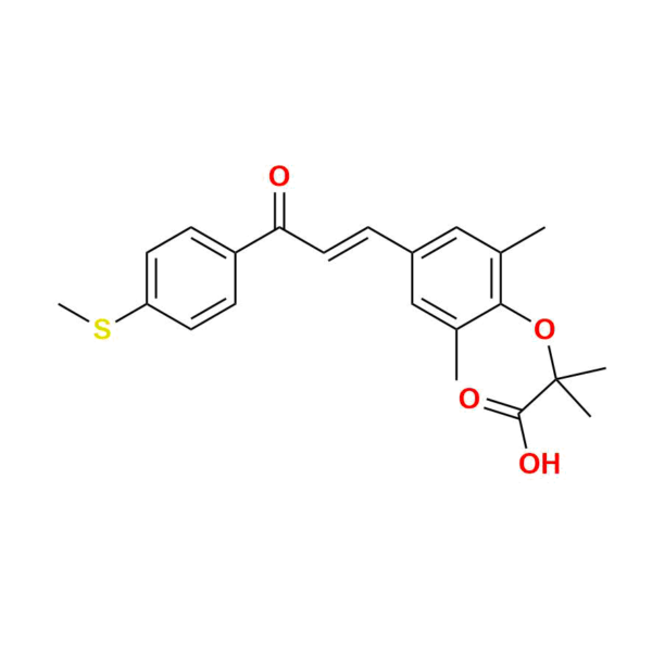 | Chemical name | (E)-2-(2, 6-dimethyl-4-(3-(4-(methylthio)phenyl)-3-oxoprop-1-en-1-yl)phenoxy)-2-methylpropanoic acid |
