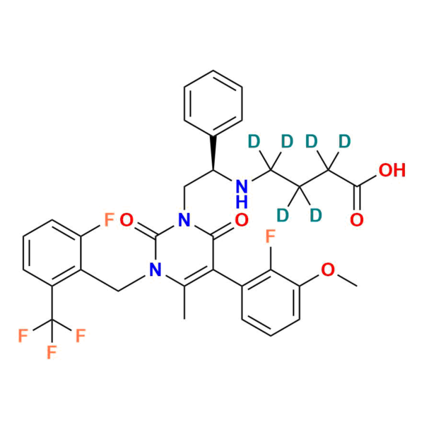 Elagolix d6 is a high-quality reference standard supplied with comprehensive characterization data, ensuring compliance with regulatory guidelines. This product is essential for analytical method development, method validation (AMV), quality control (QC) applications, and plays a crucial role in Abbreviated New Drug Applications (ANDA).