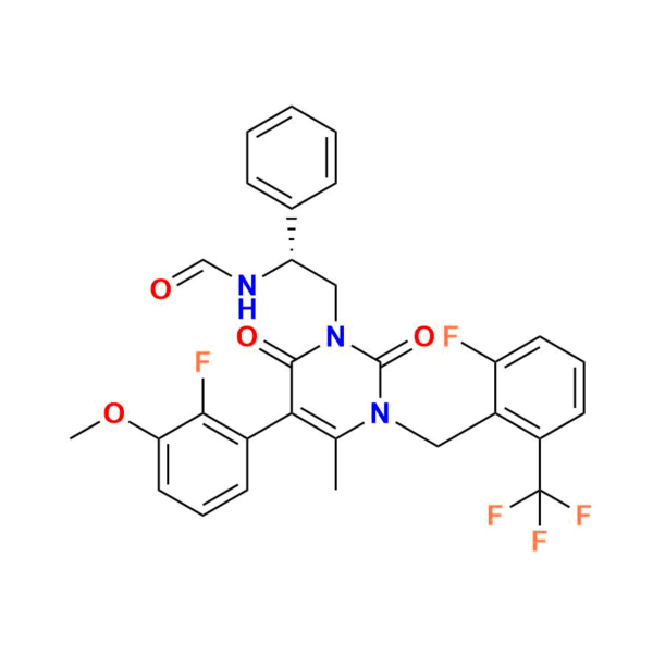 | Chemical name | (R)-N-(2-(5-(2-fluoro-3-methoxyphenyl)-3-(2-fluoro-6-(trifluoromethyl)benzyl)-4-methyl-2, 6-dioxo-3, 6-dihydropyrimidin-1(2H)-yl)-1-phenylethyl)formamide |
