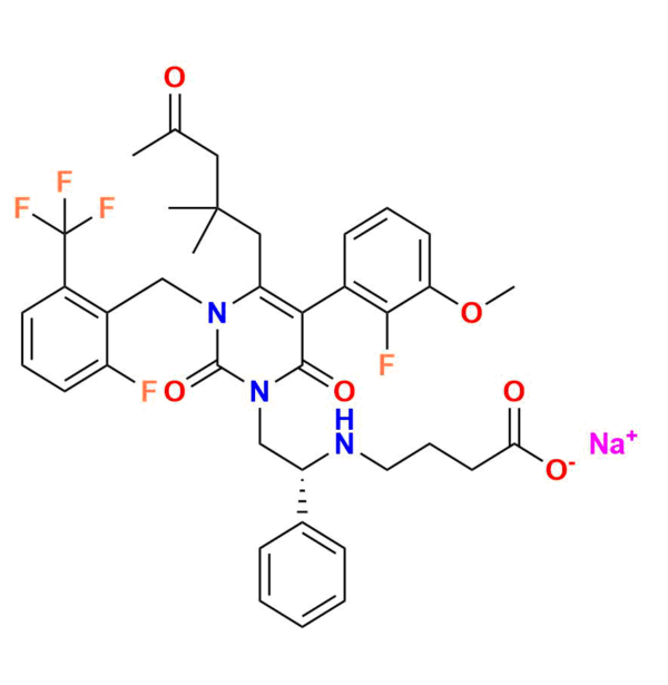 Elagolix Impurity 14 is a high-quality reference standard supplied with comprehensive characterization data, ensuring compliance with regulatory guidelines. This product is essential for analytical method development, method validation (AMV), quality control (QC) applications, and plays a crucial role in Abbreviated New Drug Applications (ANDA).