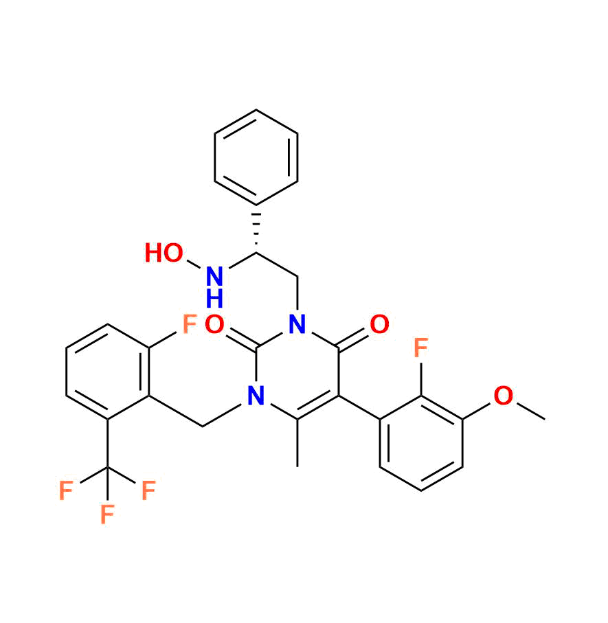| Chemical name | (R)-5-(2-fluoro-3-methoxyphenyl)-1-(2-fluoro-6-(trifluoromethyl)benzyl)-3-(2-(hydroxyamino)-2-phenylethyl)-6-methylpyrimidine-2, 4(1H, 3H)-dione |