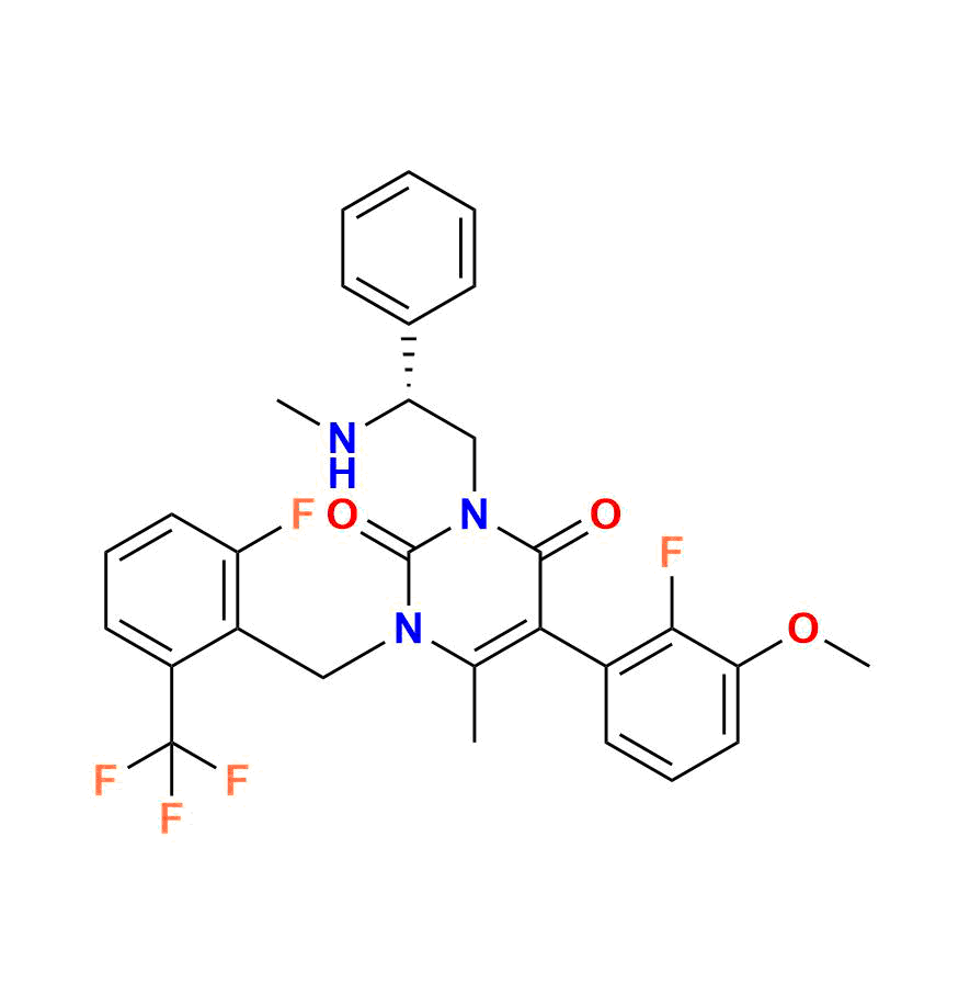 | Chemical name | (R)-5-(2-fluoro-3-methoxyphenyl)-1-(2-fluoro-6-(trifluoromethyl)benzyl)-6-methyl-3-(2-(methylamino)-2-phenylethyl)pyrimidine-2, 4(1H, 3H)-dione |