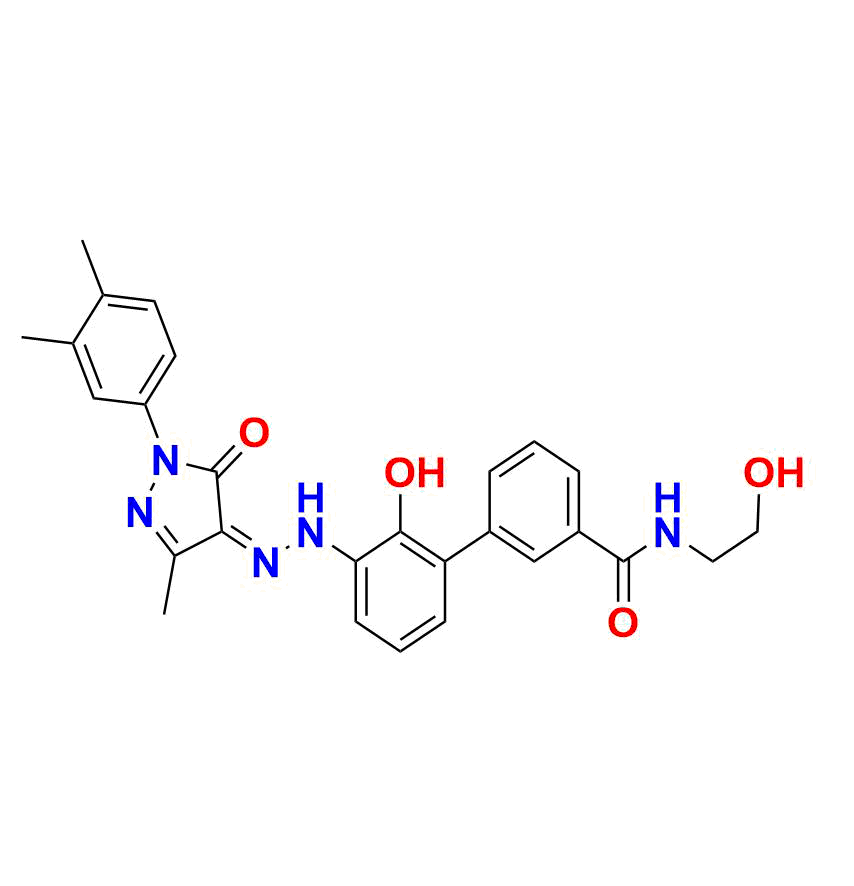 | Chemical name | (Z)-3'-(2-(1-(3, 4-dimethylphenyl)-3-methyl-5-oxo-1, 5-dihydro-4H-pyrazol-4-ylidene)hydrazineyl)-2'-hydroxy-N-(2-hydroxyethyl)-[1, 1'-biphenyl]-3-carboxamide |