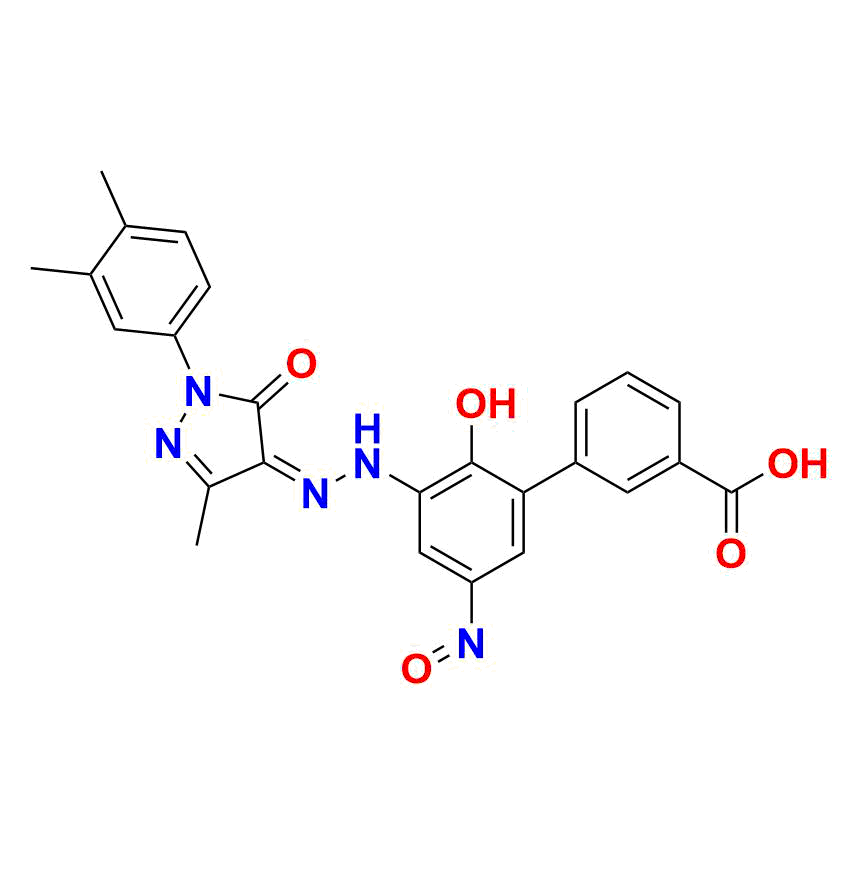 | Chemical name | (Z)-3'-(2-(1-(3, 4-dimethylphenyl)-3-methyl-5-oxo-1, 5-dihydro-4H-pyrazol-4-ylidene)hydrazineyl)-2'-hydroxy-5'-nitroso-[1, 1'-biphenyl]-3-carboxylic acid |