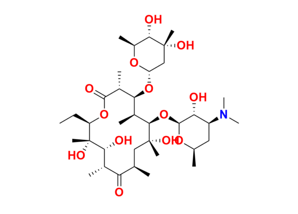 | Chemical name | (3R, 4S, 5S, 6R, 7R, 9R, 11R, 12R, 13S, 14R)-4-(((2R, 4R, 5S, 6S)-4, 5-Dihydroxy-4, 6-dimethyltetrahydro-2H-pyran-2-yl)oxy)-6-(((2S, 3R, 4S, 6R)-4-(dimethylamino)-3-hydroxy-6-methyltetrahydro-2H-pyran-2-yl)oxy)-14-ethyl-7, 12, 13-trihydroxy-3, 5, 7, 9, 11, 13-hexamethyloxacyclot |