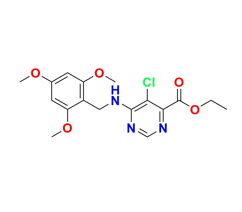 ethyl 5-chloro-6-((2,4,6-trimethoxybenzyl)amino)pyrimidine-4-carboxylate is a high-quality reference standard supplied with comprehensive characterization data, ensuring compliance with regulatory guidelines. This product is essential for analytical method development, method validation (AMV), quality control (QC) applications, and plays a crucial role in Abbreviated New Drug Applications (ANDA). ethyl 5-chloro-6-((2,4,6-trimethoxybenzyl)amino)pyrimidine-4-carboxylate can be used as a reference standard, with possible traceability to pharmacopeial standards such as USP or EP, based on feasibility. AquigenBio products are strictly for analytical purposes and is not intended for human use.