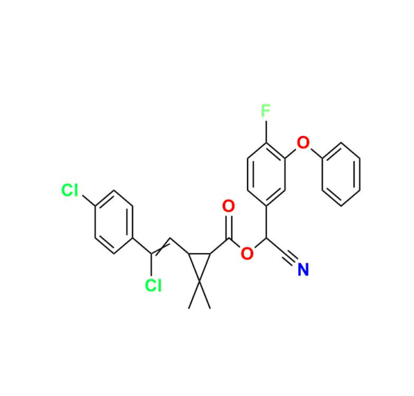| Chemical name | cyano(4-fluoro-3-phenoxyphenyl)methyl 3-(2-chloro-2-(4-chlorophenyl)vinyl)-2, 2-dimethylcyclopropane-1-carboxylate |