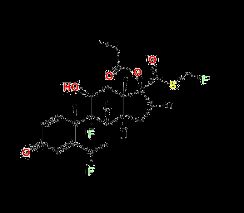 | Chemical name | (6S, 8S, 9R, 10S, 11S, 13S, 14S, 16R, 17S)-6, 9-difluoro-17-(((fluoromethyl)thio)carbonyl)-11-hydroxy-10, 13, 16-trimethyl-3-oxo-6, 7, 8, 9, 10, 11, 12, 13, 14, 15, 16, 17-dodecahydro-3H-cyclopenta[a]phenanthren-17-yl propionate |